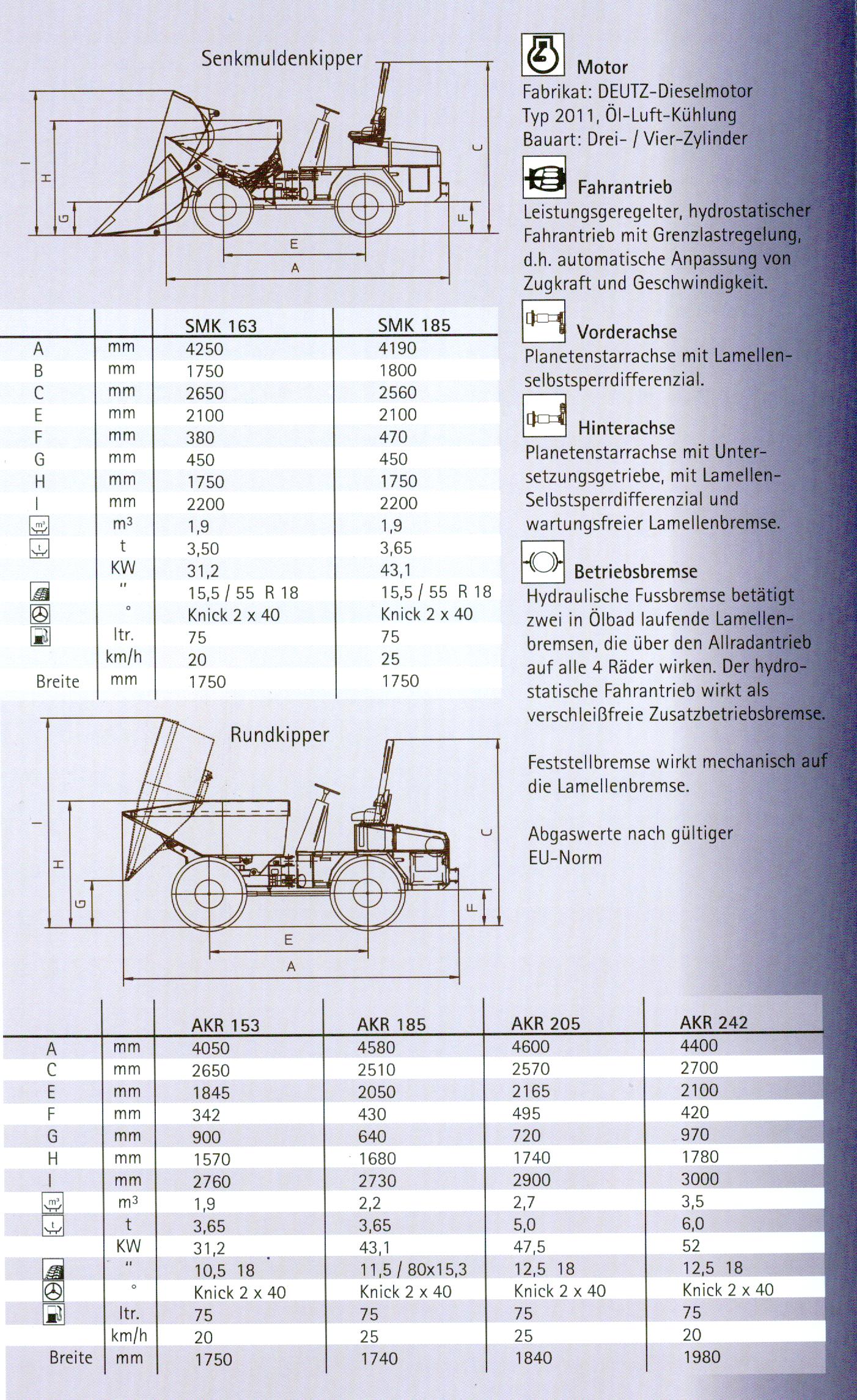 Dreiseitenkipper: AKR 185, Nutzlast: 3.650 kg, Muldeninhalt: 2.2 m³